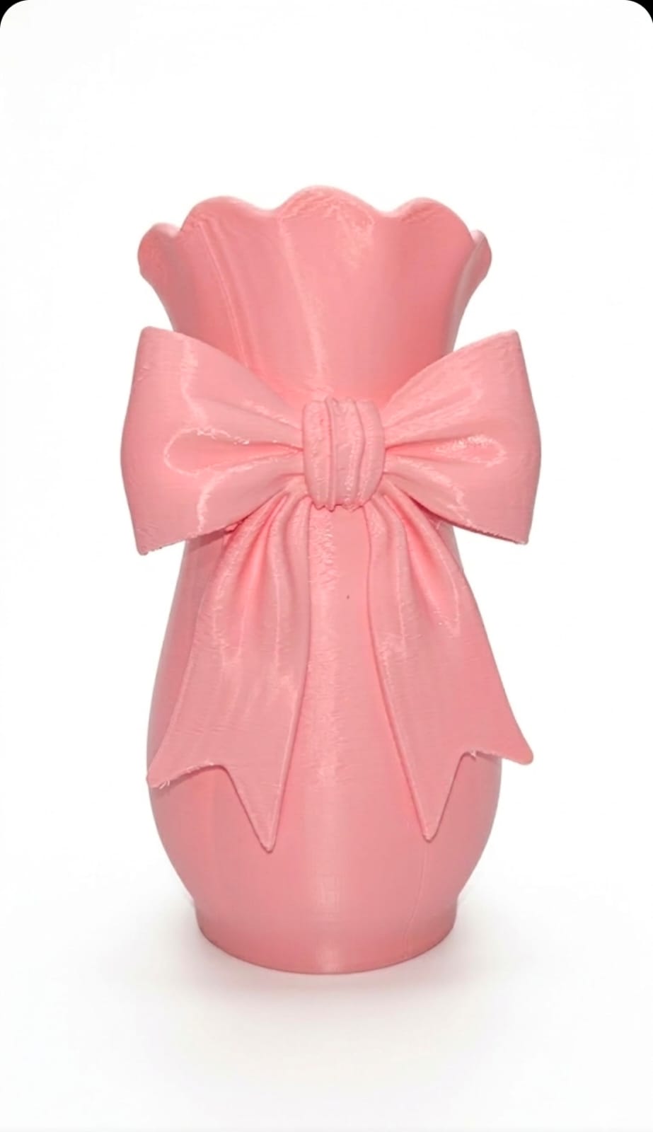 Fabricado com tecnologia de impressão 3D, o vaso é produzido em termoplástico PLA, material conhecido por sua resistência e durabilidade. O design moderno ganha destaque pelo laço detalhado que contorna o vaso, valorizando ambientes internos com charme e sofisticação.